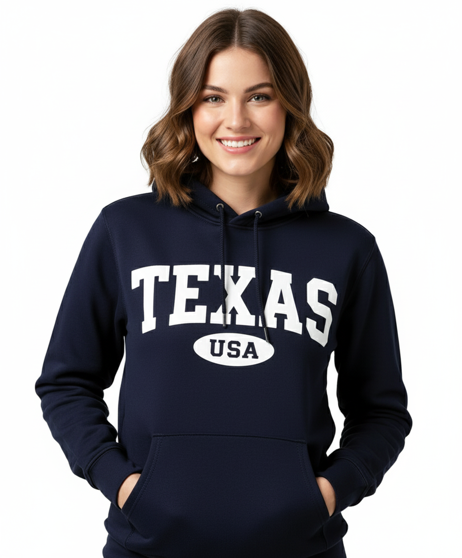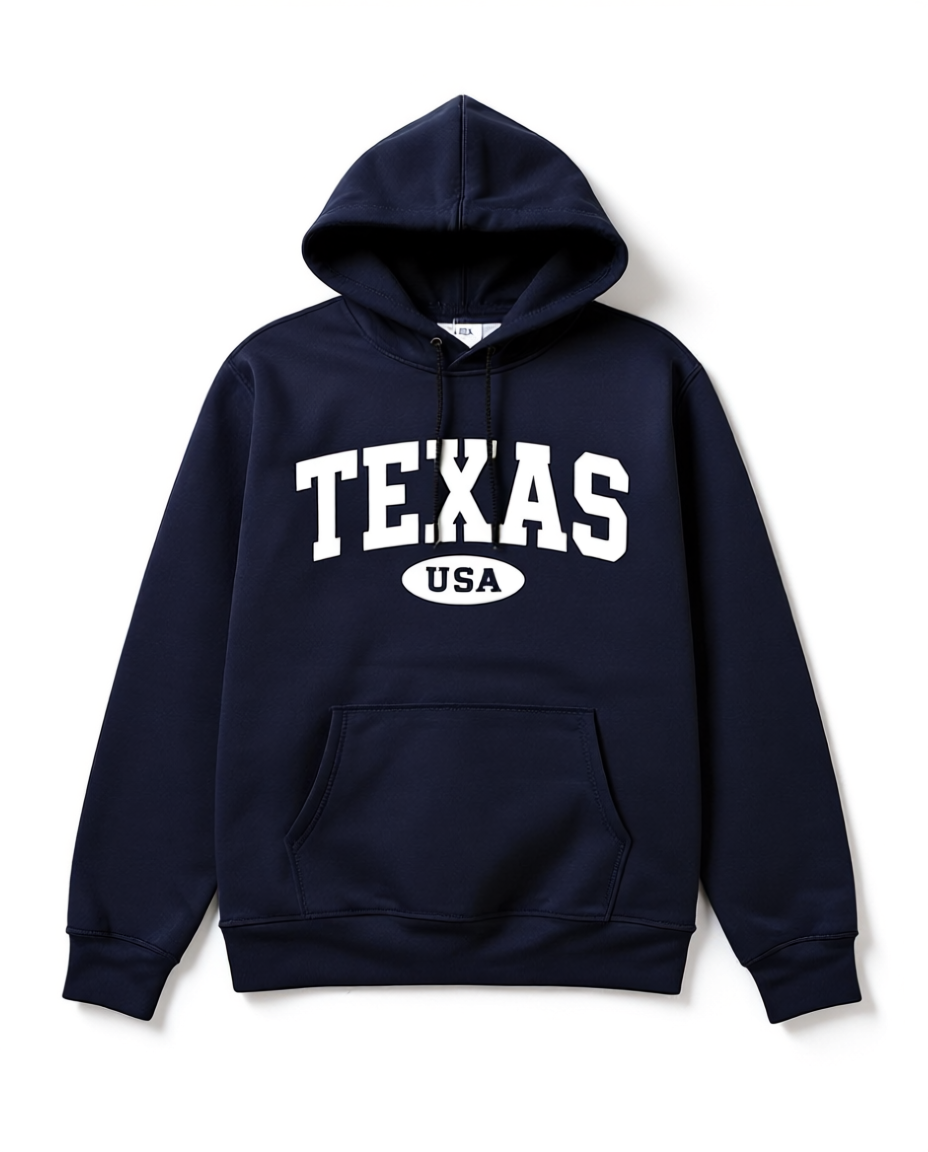 The adjustable drawstring hood adds extra comfort and protection, while the soft fleece lining ensures all-day coziness. Whether you’re exploring Texas, cheering for your team, or just relaxing, this hoodie keeps you stylish and comfortable everywhere you go.